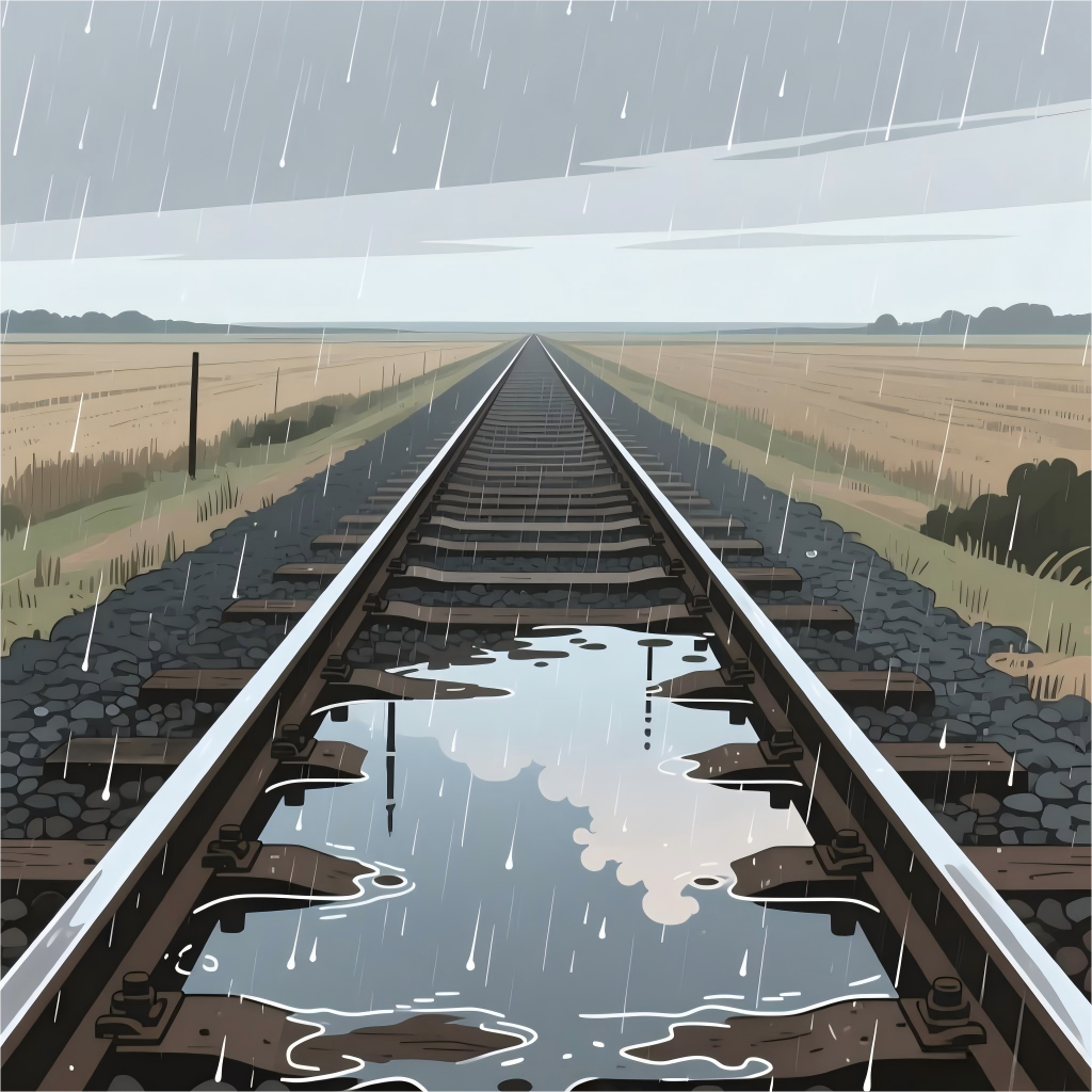 当人站在铁轨中间向前看,会看到两条物理上平行的铁轨,随着距离变远逐渐靠拢,最终在远方地平线处交汇于一个点,这个点就是消失点。这是人眼或相机成像的普遍视觉效果。